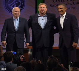 Rick Warren will be the big winner at the end of the forum. With a national TV audience, Pastor Warren will position himself as the heir apparent to Billy Graham as ‘America’s pastor’. This will be the first glance that most Americans get of Warren in action in the pulpit. While he has been a fixture on cable news shows for several years now, Saturday will be America’s first chance to sit in on a Warren led event. No matter who is elected in November, expect Rick Warren to be front and center at the inauguration.